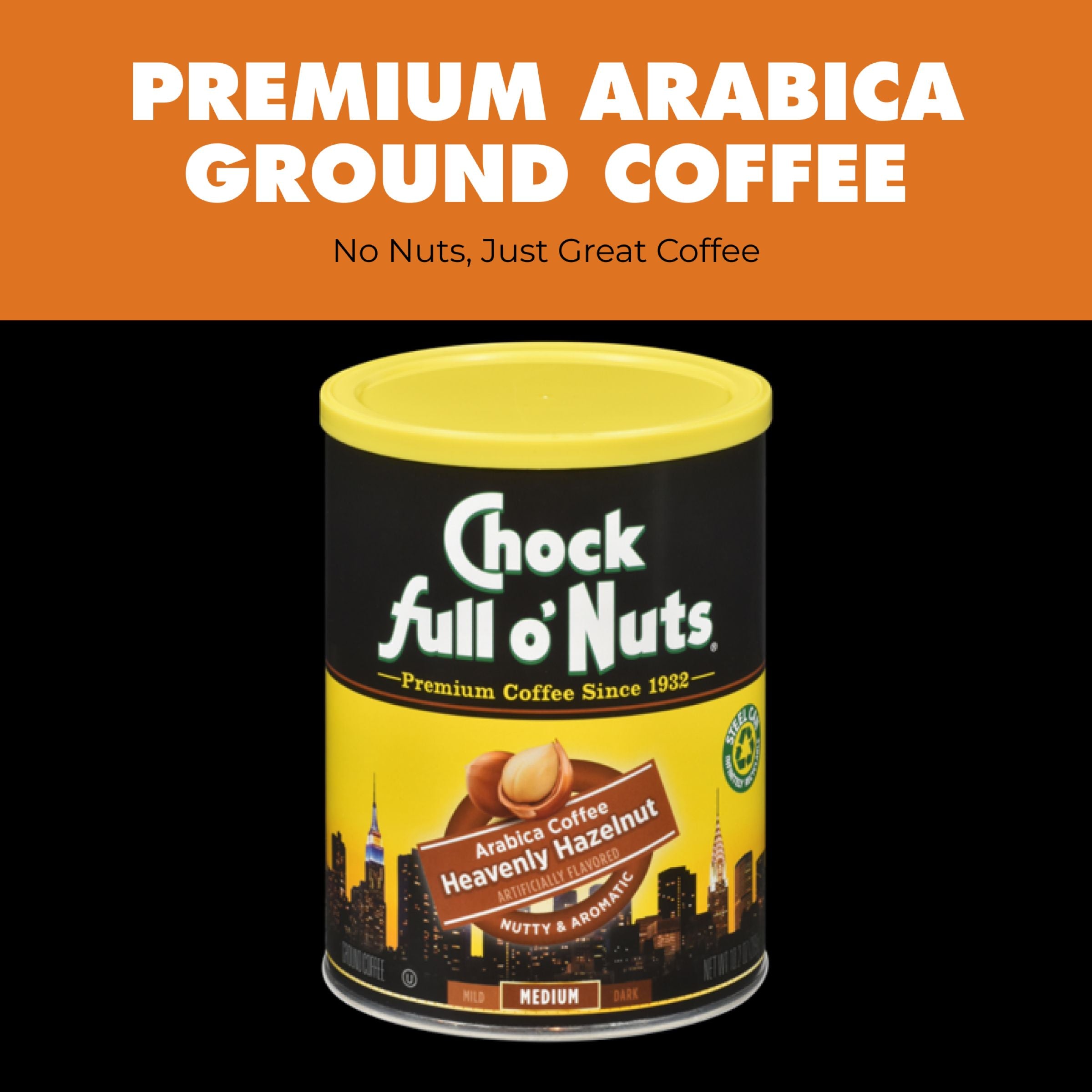 - KOSHER AND GLUTEN FREE: Chock full o’Nuts® ground coffee is Orthodox Union Certified Kosher and also gluten free. It comes in our classic stainless steel, taxicab yellow and black can.