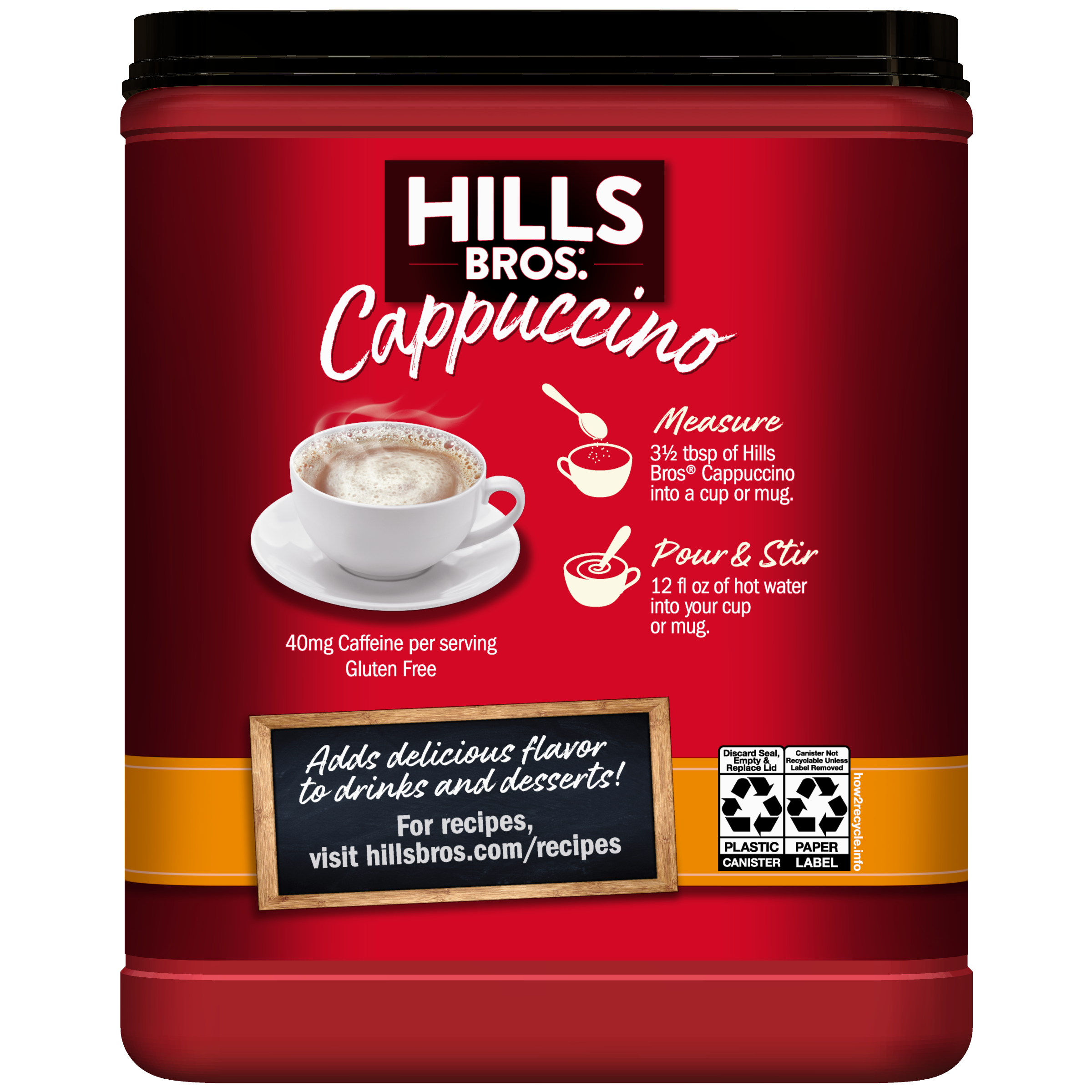- INSTANT CAPPUCCINO - When you're in the mood for a cappuccino, look no further than Hills Bros.® instant cappuccino mix. Just add water.