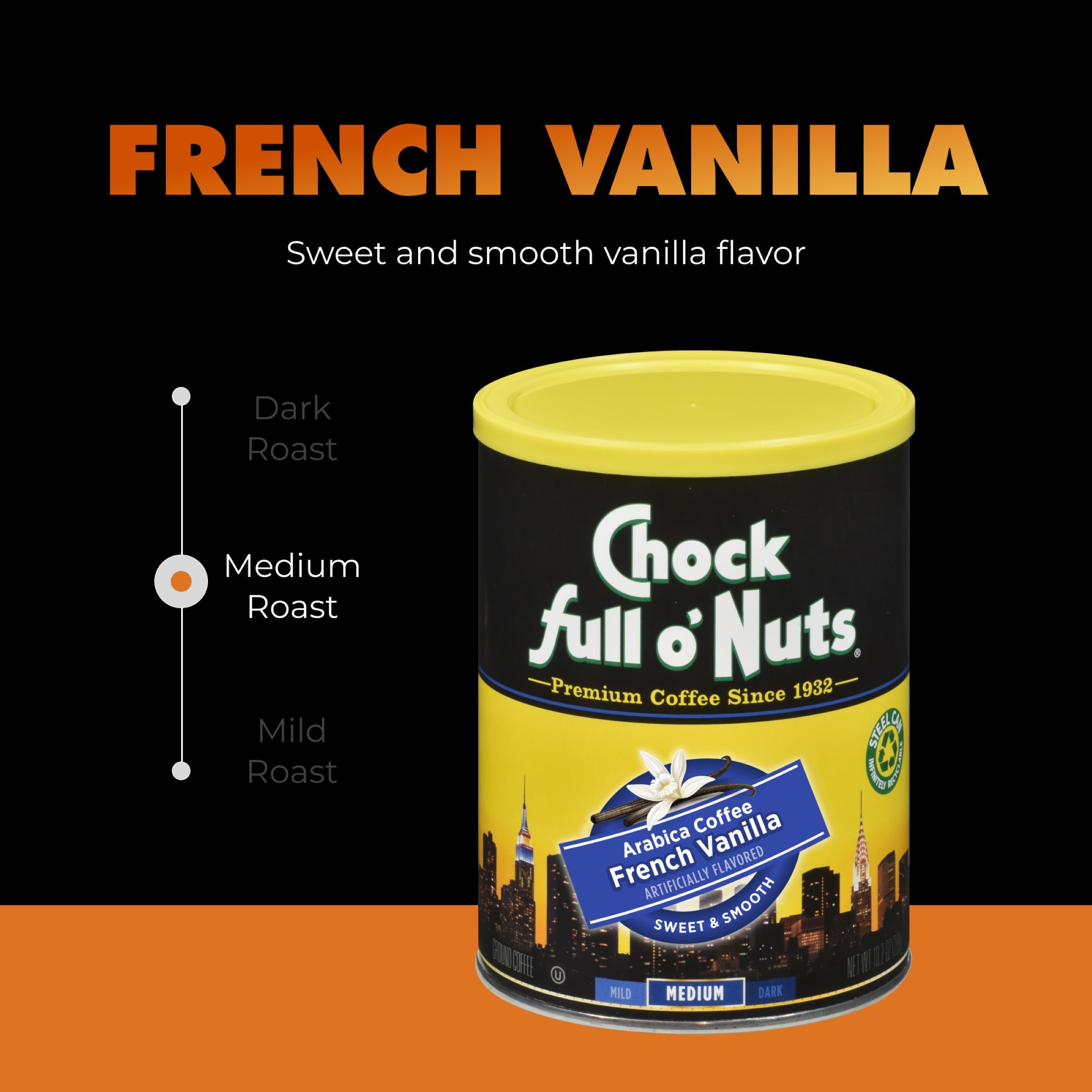 - FRENCH VANILLA – Chock full o’Nuts® French Vanilla coffee is aromatic, smooth and delicious, with a sweet vanilla flavor that is sure to please.