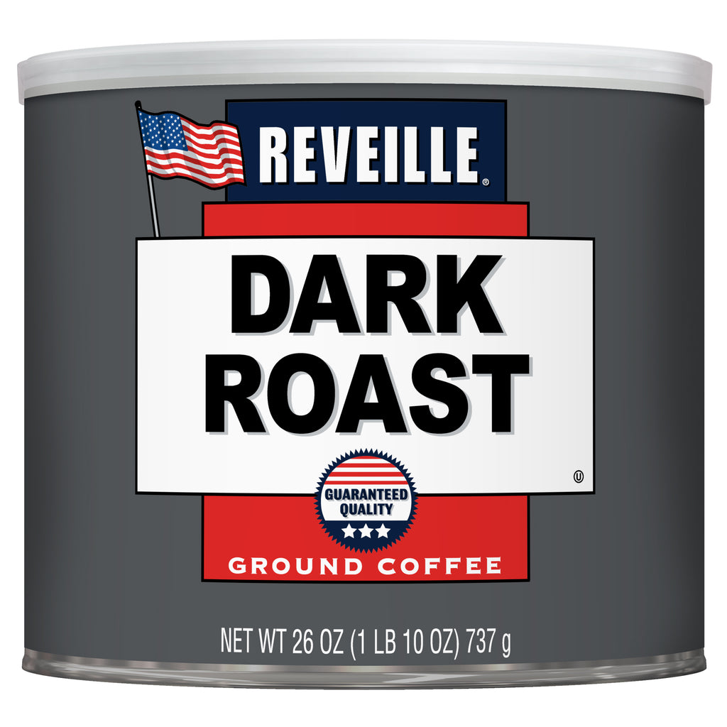 Reveille® Coffee, Dark Roast, Ground, 26oz Can - Case of 6