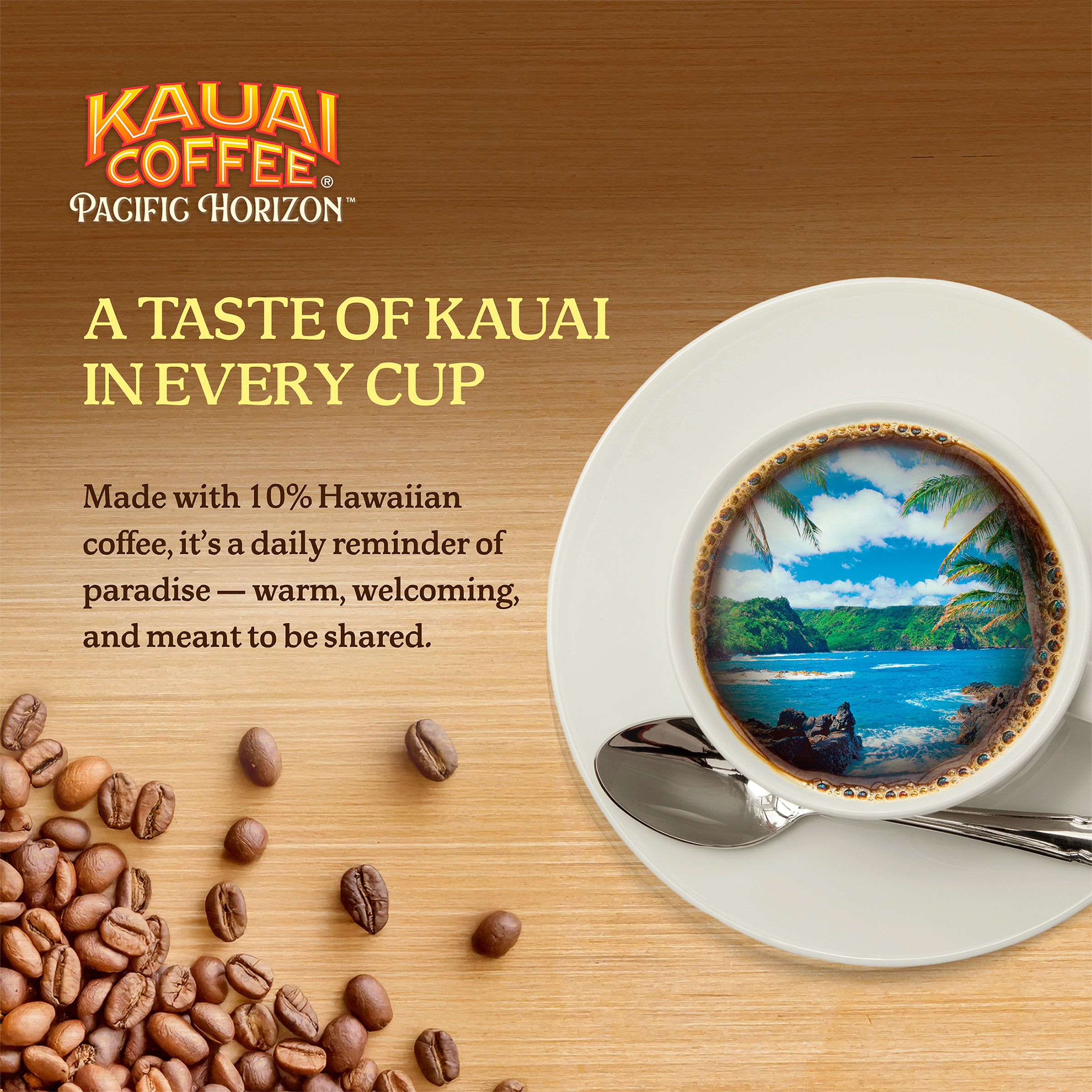- 10% HAWAIIAN GROWN COFFEE – Grown and harvested on the island of Kauai