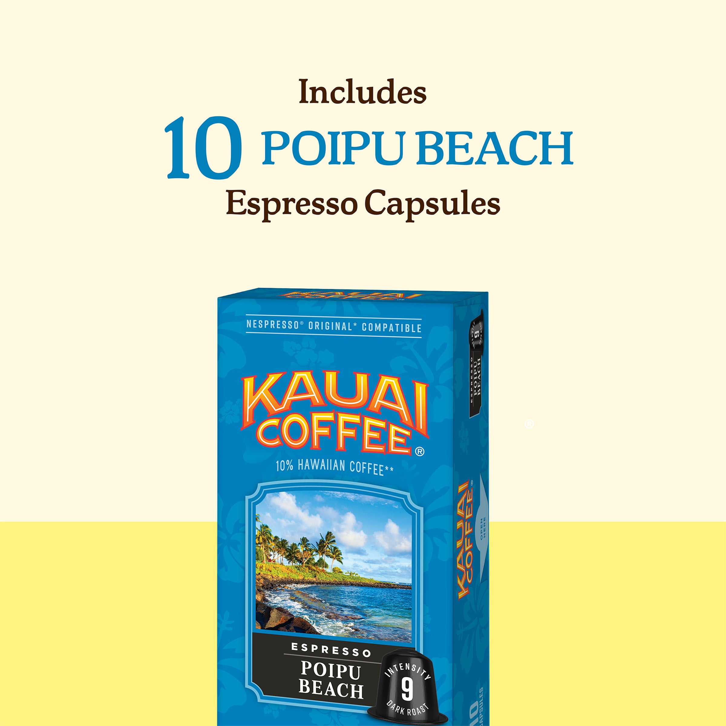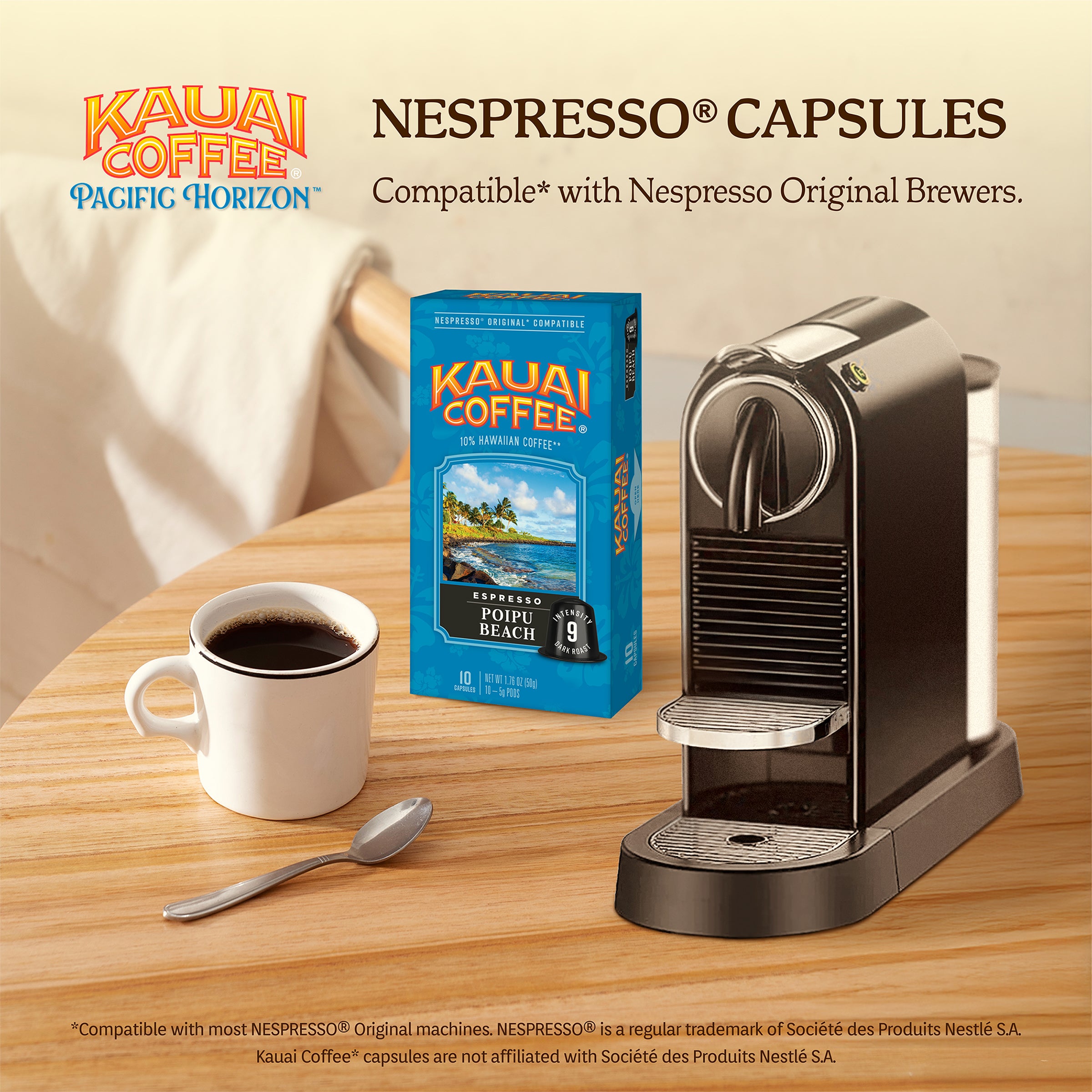 *Compatible with most NESPRESSO® Original machines. NESPRESSO® is a registered trademark of Societe des Products Nestle S.A. Kauai Coffee® capsules are not affiliated with Societe des Products Nestle S.A.