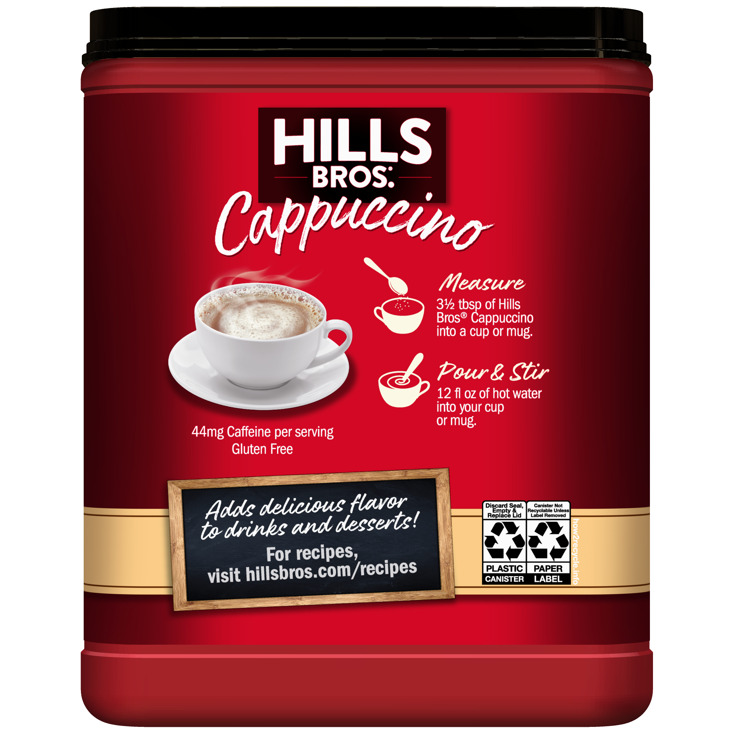 - INSTANT CAPPUCCINO - When you're in the mood for a cappuccino, look no further than Hills Bros.® instant mix. Just add water.