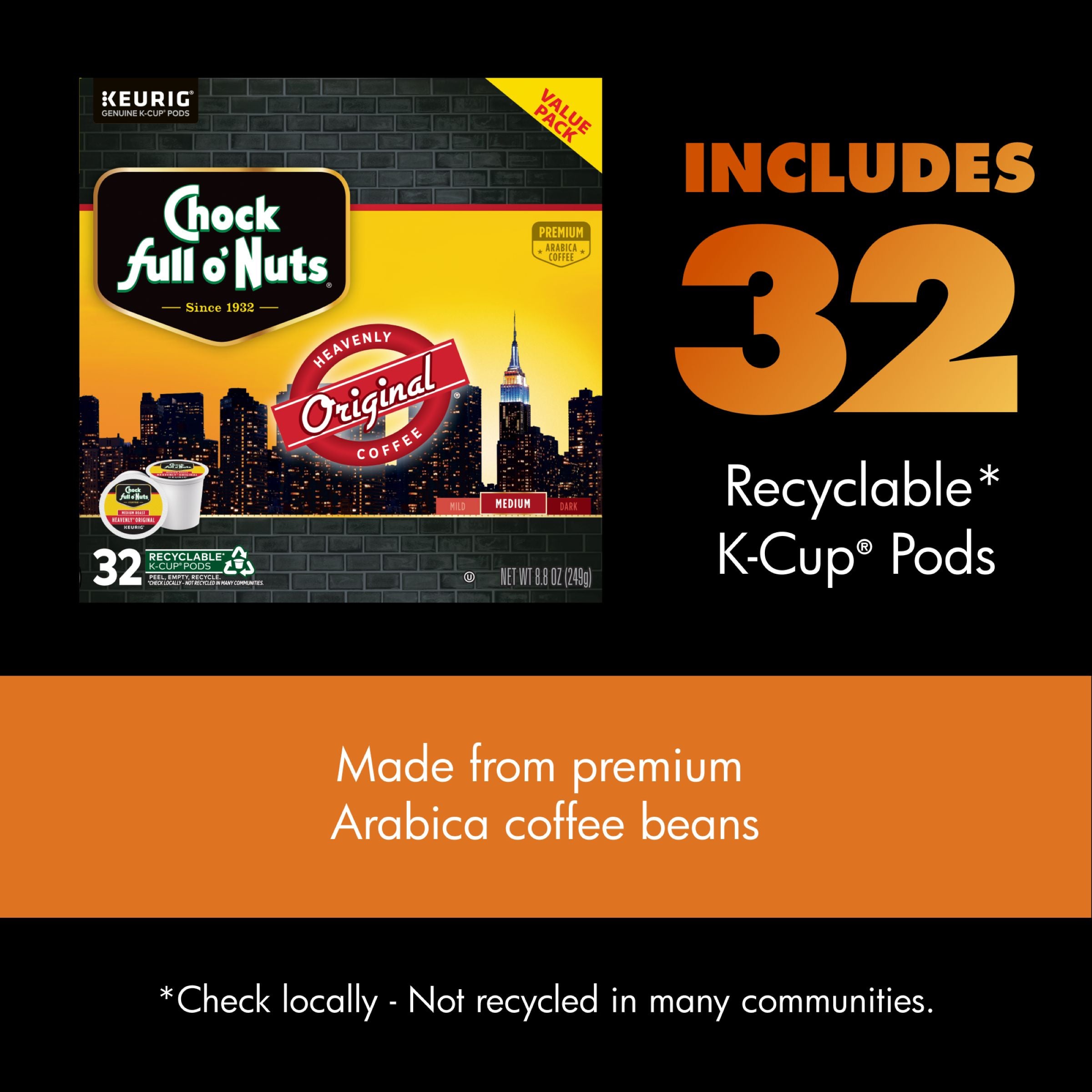 - Chock full o'Nuts® K-Cup® pods are designed for use in Keurig® brewers and compatible single-cup brewing systems.