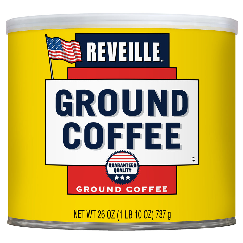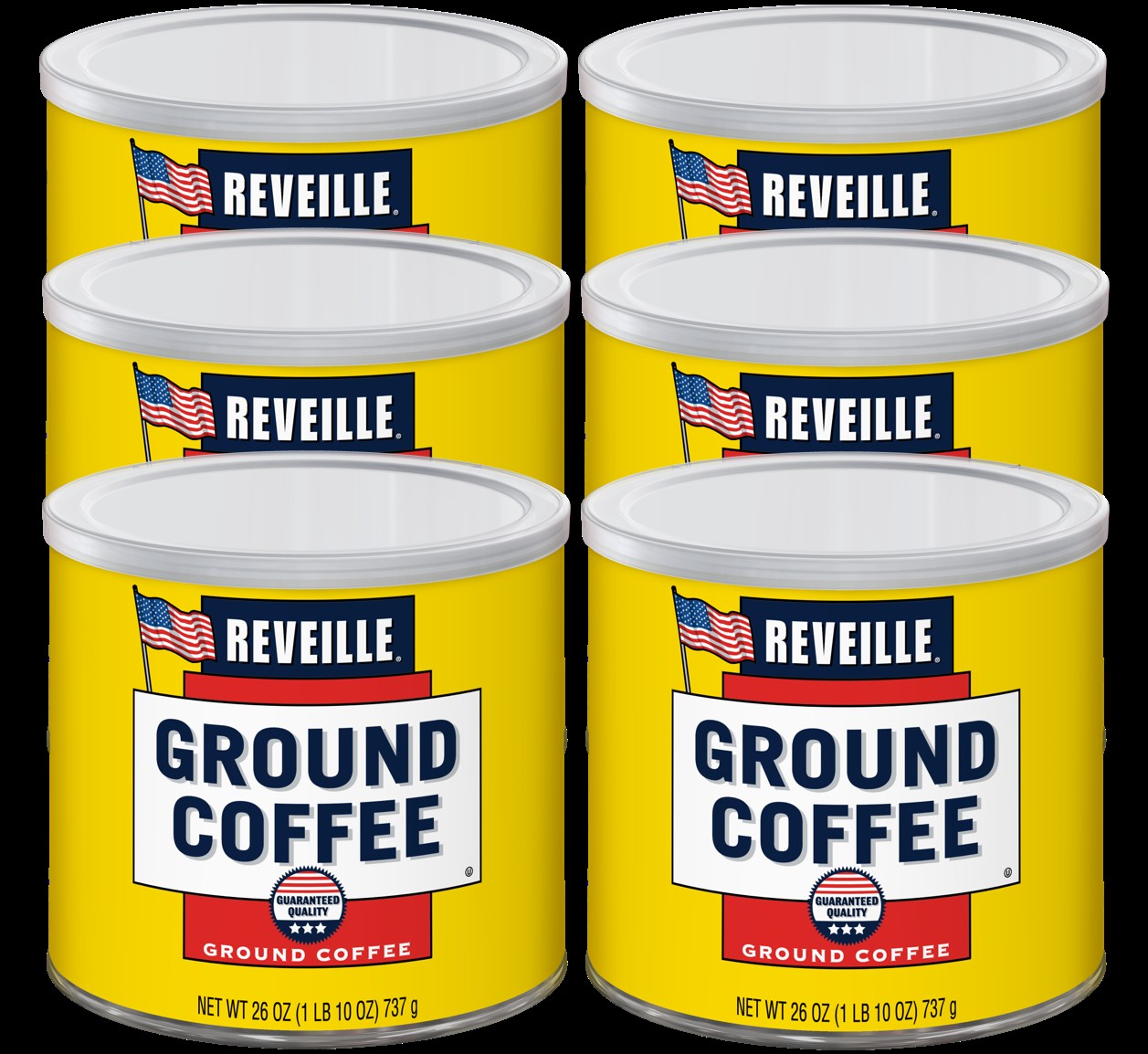 Reveille® Coffee, Medium Roast, Ground, 26oz Can - Case of 6